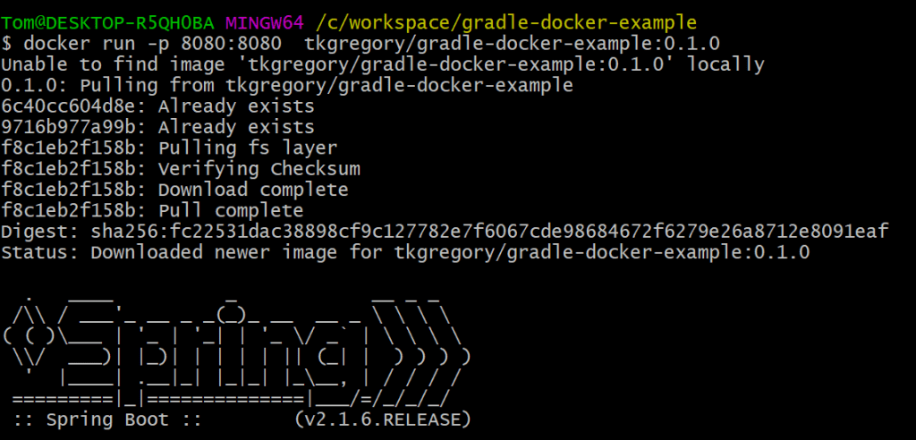 Now you’ve seen how to create images, run containers, and push images using simple Gradle Docker tasks.