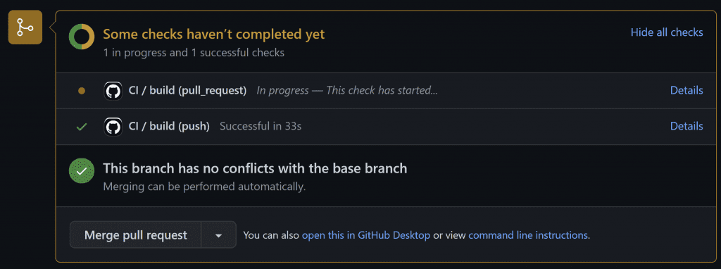 You'll see this box showing that a workflow run is now in progress for this pull request