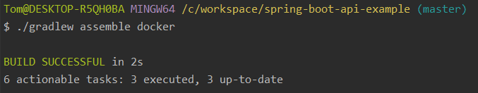 Edit the build.gradle of the Spring Boot API application and replace tkgregory in the imageName variable with your own Docker Hub username i.e. String imageName = "<your-docker-hub-username>/spring-boot-api-example:$version"
