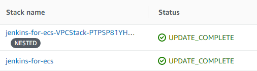 - !GetAtt JenkinsSecurityGroup.GroupIdOnce this change is applied the ECS service creates the ECS task in the remaining subnet, and the Jenkins instance is available again in 2m28s. ✅