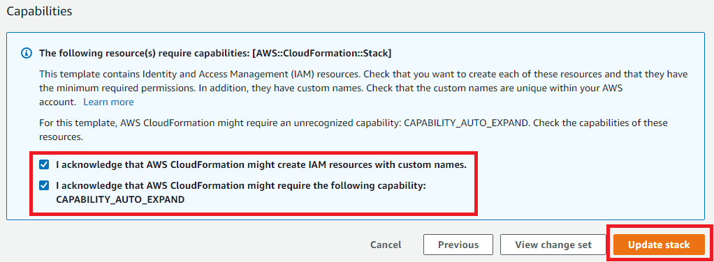 accept that this stack may create IAM resources and needs the