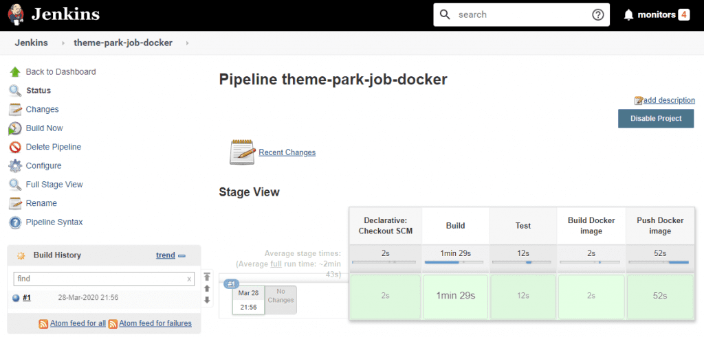 Importantly, we now have a theme-park-job-aws job. This references the Jenkinsfile-aws in the Spring Boot API project.