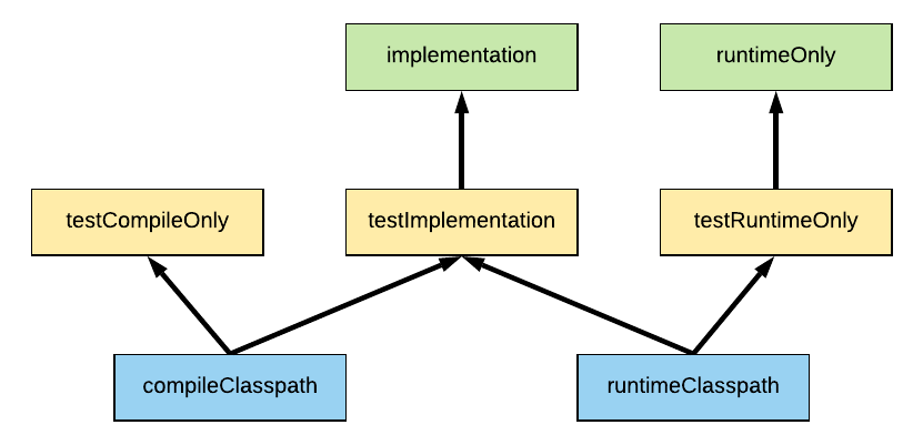 It's worth noting that it's a very similar story for test dependencies, with the Gradle Java plugin providing the testRuntimeOnly, testImplementation, and testCompileOnly dependency configurations. What dependencies you add to these configurations determines how your test compile and runtime classpaths will be created.