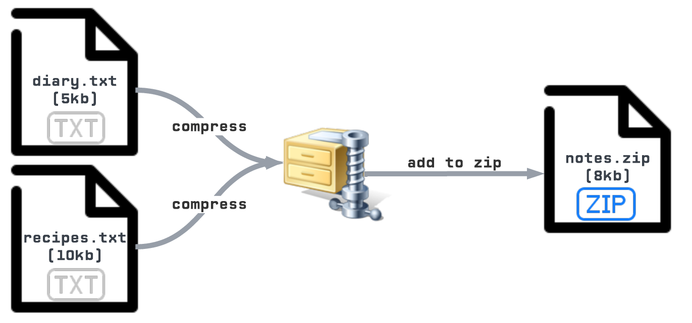 For example, imagine we have 2 files we want to add to a new zip archive: