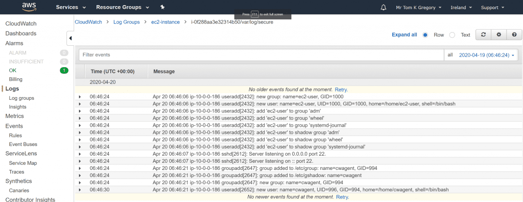 Now you can follow these steps to see the /var/log/secure log file from the EC2 instance in the AWS console.